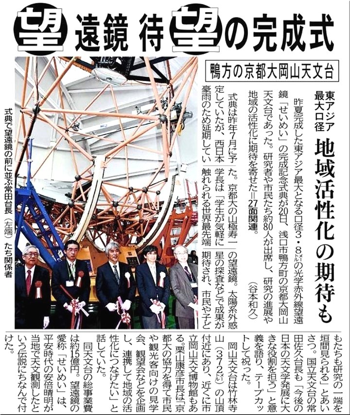 東洋一…東アジア最大…う〜ん、規模的にはどちらが勝るのでしょうネ…いずれにしましても、今後の日本の天文学発展に大きく寄与して貰えましたら嬉しいですねぇ〜