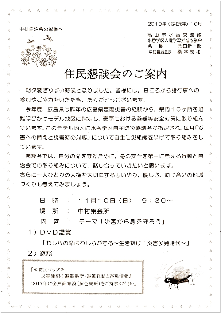 住民懇談会の方は、「災害から身を守ろう」がテーマのようであります。