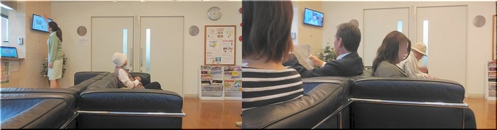 まだ皮膚科sanの扉は閉まっていますから、先客の皆さん同様に入口付近で待機です。そして待つこと5〜6分。ヤッと中に入れましたネ(^_^)v