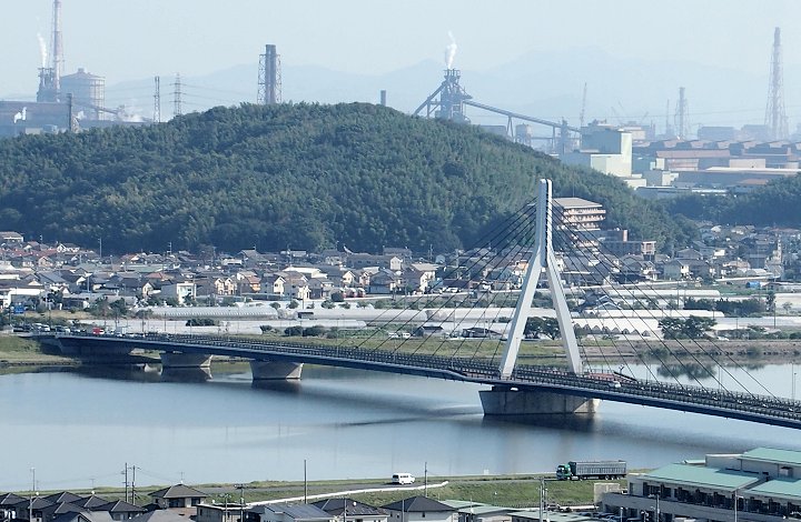 いつもながら、イィ景観です。我が町を見下ろしておりますと、心が和みます。この日も芦田川の川面が大変穏やかでありました(^-^)//"