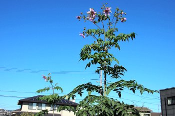 我が家周辺でも、この皇帝ダリアを植えておられますお宅は多いのですけど、近隣のお宅は、どちらも凡て台風で倒れましたとか…