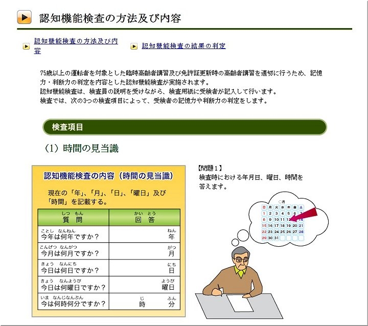 --- 更新時における高齢者講習の内容(70歳から74歳の方) ---