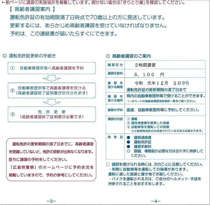 本日、高齢者講習のご案内が届いておりました(^.-)☆