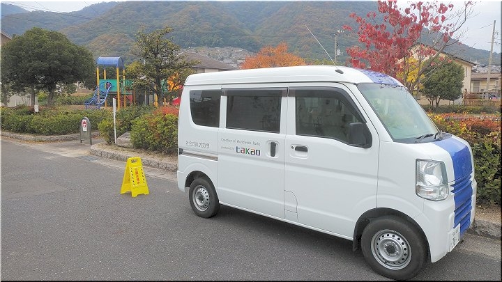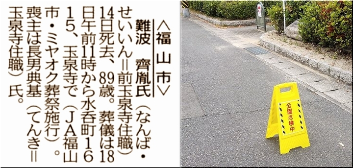 A.M.10:30に我が家を出ましてお寺に向かっておりますと、公園脇に、またまたタカオ郭anの車が駐まっておりました。その車の後方には『公園点検中』の表示板が…