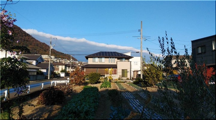 真っ青の透き通る青空ですから実に爽やかな空なのですけど、北方方向に眼を向けますと、帯状の雲が覆っておりました。う〜ん、地震雲でもないのでしょうけど…