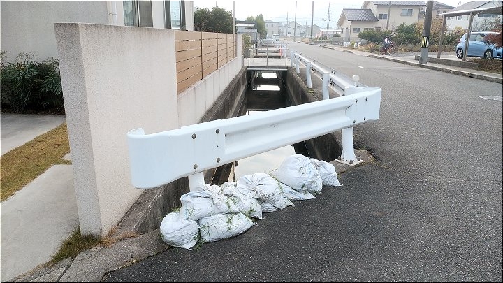 このガードレール下の土嚢…12/10(火)に撮りましたものなんです。