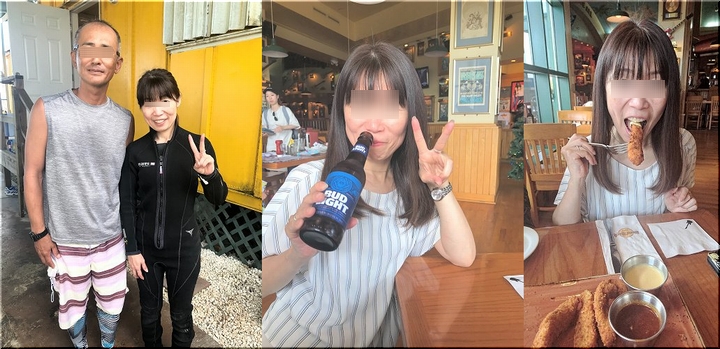「グアム旅行は社員旅行です。ダイビングは社員旅行のついでに会社の人とオプションで参加しました。私とツーショットで写ってる男性の方はダイビングのインストラクターの方で去年もお世話になりました。ハードロックカフェは世界中に何処にでもあるハンバーガーとステーキのお店です。アメリカ 感満載の雰囲気と味です…」