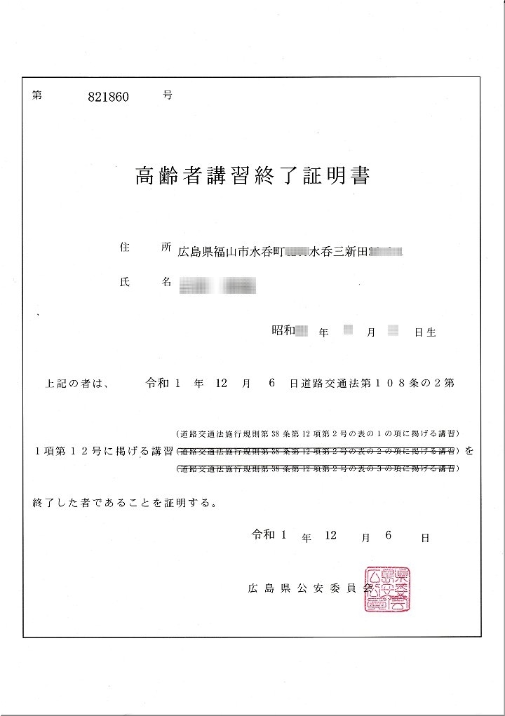 高齢者講習修了証明書は、来年の免許更新時に持参が必要のようであります。紛失しますと、再発行は出来ず、再度、受講しなければなりませんとか(^-^;