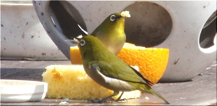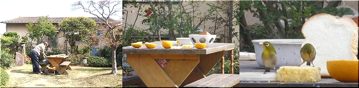 何の準備なんだろう?…多分、小鳥がヤッて来ますのかも…と勝手に想像しておりましたら、予測通り数羽のメジロが飛来です。