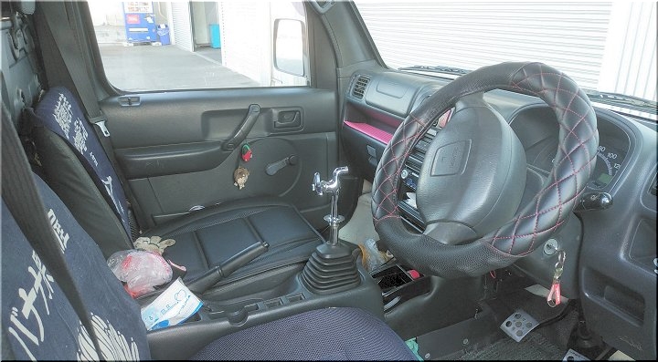 「こんなシフトレバーは、市販されてるの?」には、「売ってない、自分で作った…」との事でありました。何年か前に、こんな軽四トラックの後方のナンバープレート上部辺りに、蛇口を付けています車を見掛けた事はありますが(^-^)
