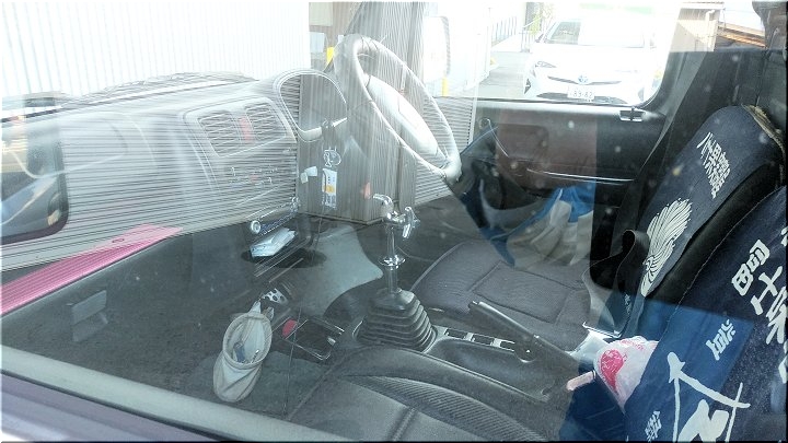 車内を覗きますと、シフトレバーは「水道蛇口」を使用ですから笑ってしまいます(^-^)