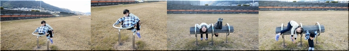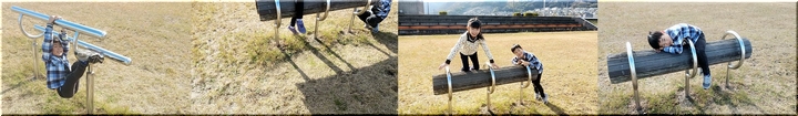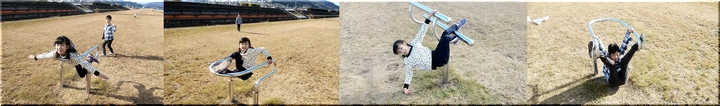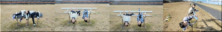 二人とも何をするのかと思いましたら、河川敷のこの場所に存在します3種類の遊具で遊び始めましたから、またまた苦笑のGONsan。凧揚げで遊んで欲しいのに(^-^;