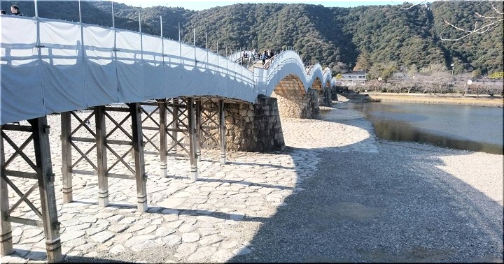 初代岩国領主吉川広家が岩国城を築城して以来、岩国城と錦川を挟んだ対岸にある城下町をつなぐ橋は数回架けられているが、錦川の洪水によりたびたび流失していた。
