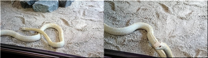 アオダイショウが白化したもの(アルビノ)である。アルビノは、突然変異によってメラニン色素を合成できなくなった生物であり、劣性遺伝のため通常個体との間にできた次世代(ヘテロ個体)では通常体色である。また、体色が白くて目立つため天敵に捕食されやすい。一般には自然下ではアルビノの出現は稀であり、ハツカネズミやシロウサギのように、飼育下で系統をコントロールすることにより維持される。