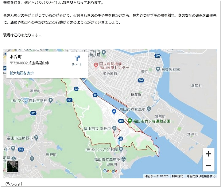 本日のA.M.10:00過ぎでしたか…WEB上で、再度、福山市内の火災を捜してみますと、なんと、昨夜の火災は水呑向丘での火災発生でしたとは、もぅビックリでありました(^-^;