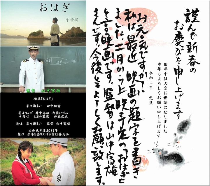 2019年度完成の新作映画『おはぎ』は、広島などで2020年2月に公開します。監督は山中富雄、脚本はタレントの菜々瀬まいです。主演もその菜々瀬まい。他に出演は、田中翔貴!そして、大國いづみ、星子リンダ、はまの省蔵、野中喜雄、広島で多くの舞台などに出演している俳優の井原武文ら豪華出演者。
