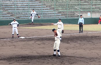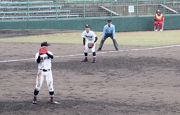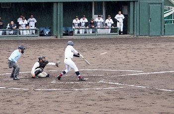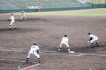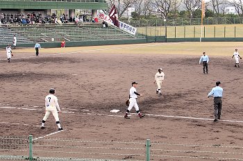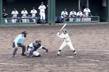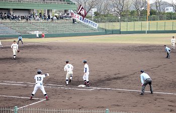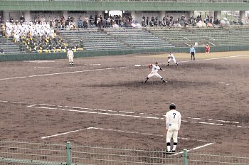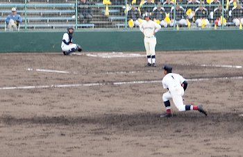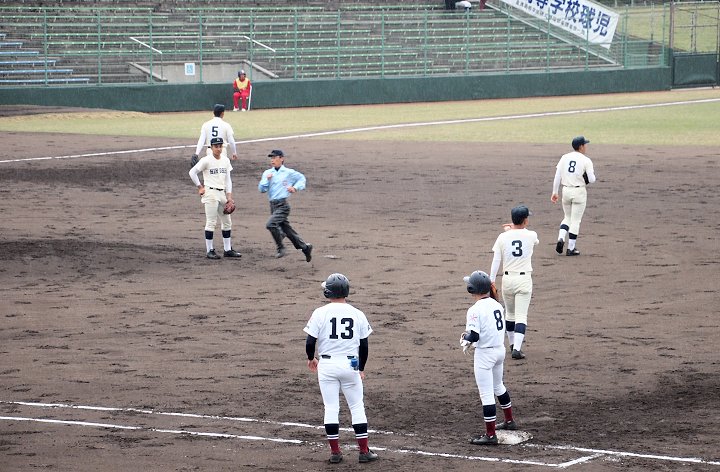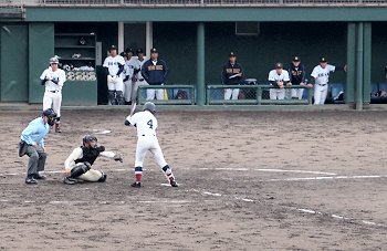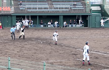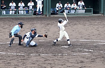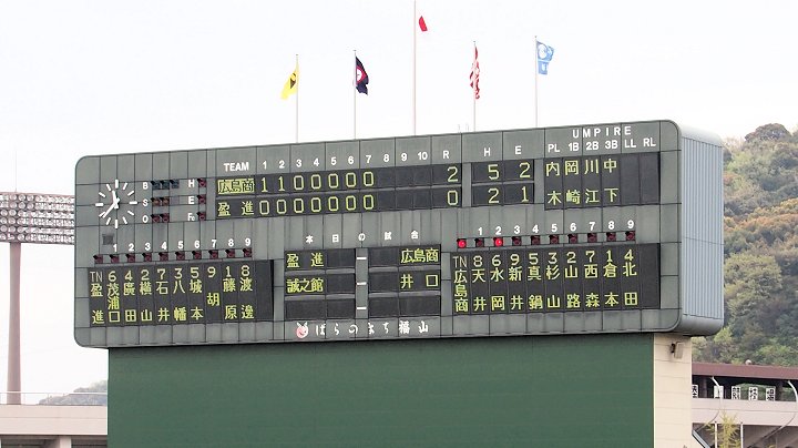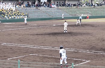 チャンスは作るのですけど、それにしましてもホームベースを踏む事が出来ません盈進高校。まぁ、広島商も以降の加点が出来ませんけど…