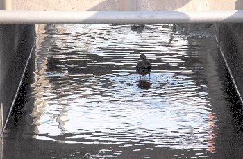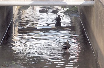 用水路を覗き込みますと、6羽のカモsan家族がノンビリと歩いておりました。水の中を歩いています音でしたようです(^-^)