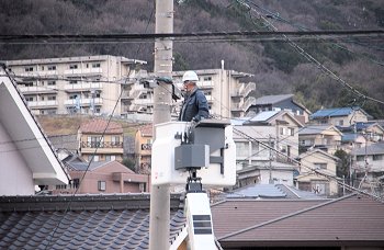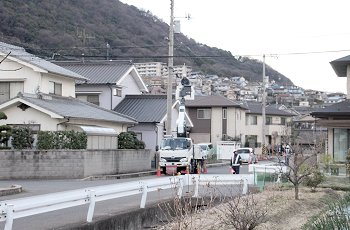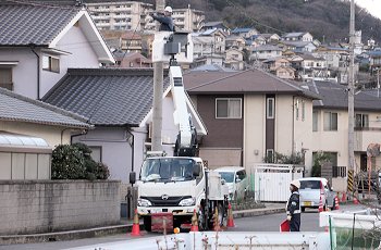 我が家近くまで戻って来ましたら、電話線工事なのかも…工事の様子を2枚ばかりパチリ。その際に、工事の方と視線が合ってしまいましたネ(^-^)
