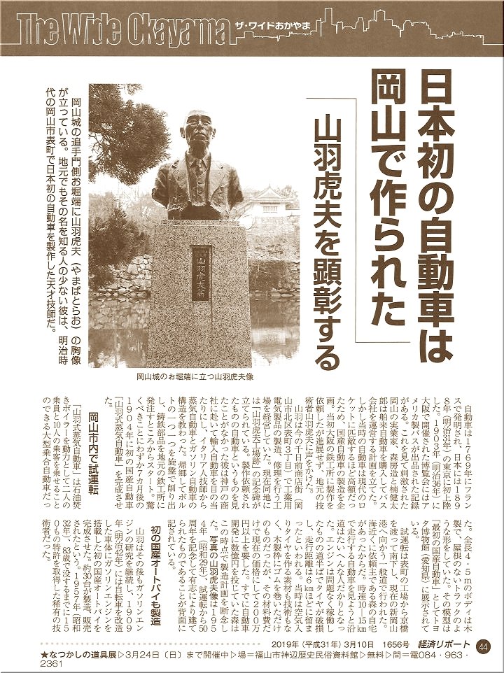 これは、3/10の「経済リポート」sanの記事なのですけど、ふ〜ん、日本初の国産自動車が岡山市で製作されましたとは知りませんでしたネ(^-^;