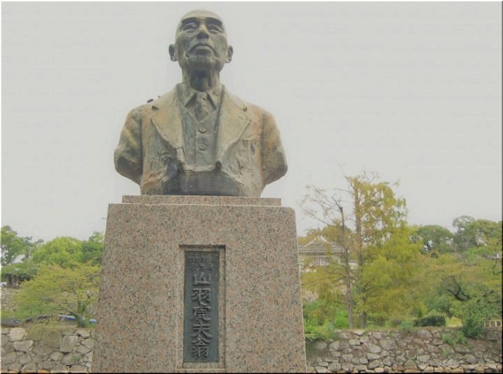 岡山市丸の内二丁目に「国産自動車創生者 山羽虎夫(やまばとらお)翁」の像がある。岡山城の大手門跡の近くである。
