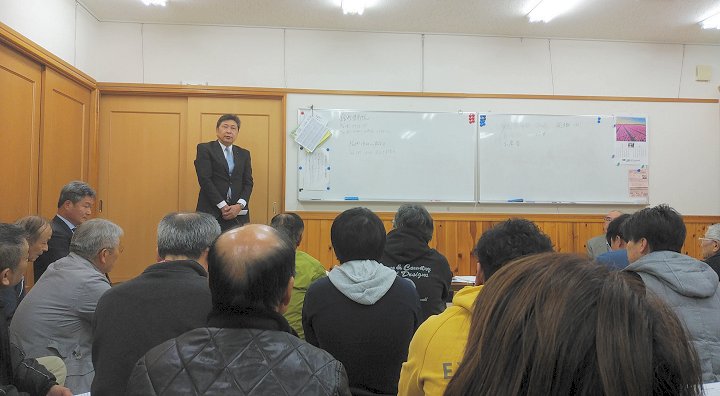 そして、定刻に総会はスタート。自治会長のご挨拶の後で、県議先生もご挨拶。