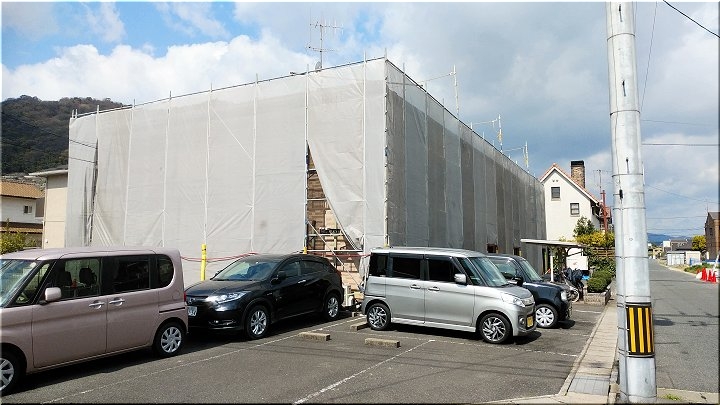 ふん、ふん、外壁の塗装工事ですねぇ〜我が家も、もぅ4〜5年前になりますでしょうか…経費を要しますから気乗りはしませんでしたけど、外壁の塗装工事を全く同じ色で施工しましたけど、この建物は何色にされますのでしょうねぇ〜
