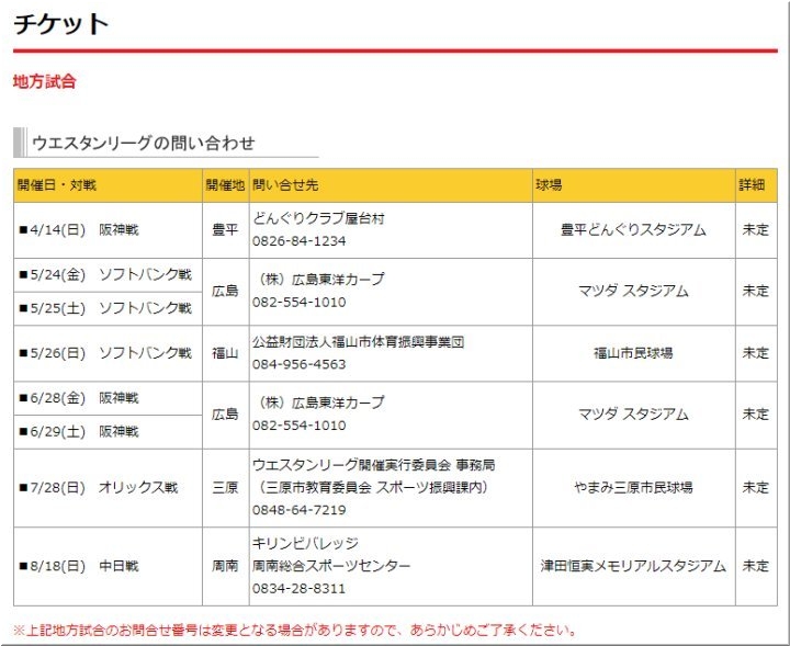 ふ〜ん、5/26(日)に福山市民球場でウエスタンリーグの試合ですか…
