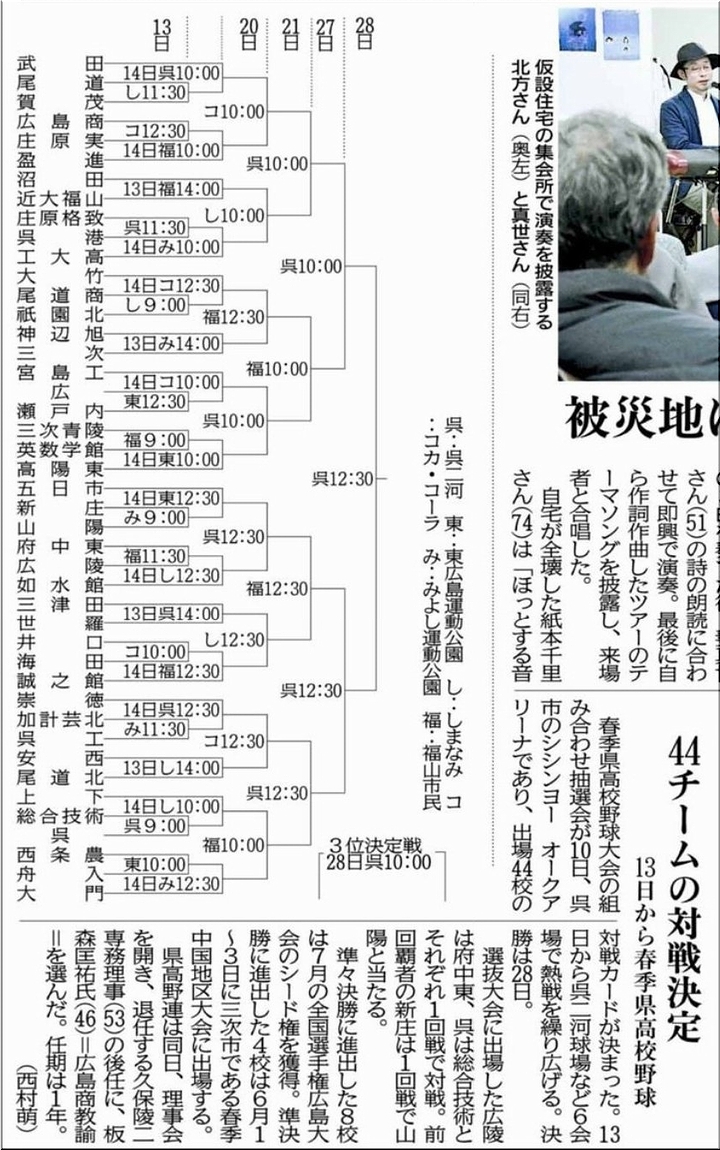 今朝の新聞紙上に、4/13(土)から春季広島県高校野球開催記事の掲載が(^.-)☆