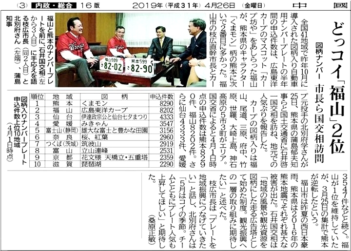 図柄が「カープ坊や」だけに納得も致しますけど、昨年10月導入以降の申請件数は熊本の「くまモン」に続き福山は2位との事のようですネ\(^o^)/