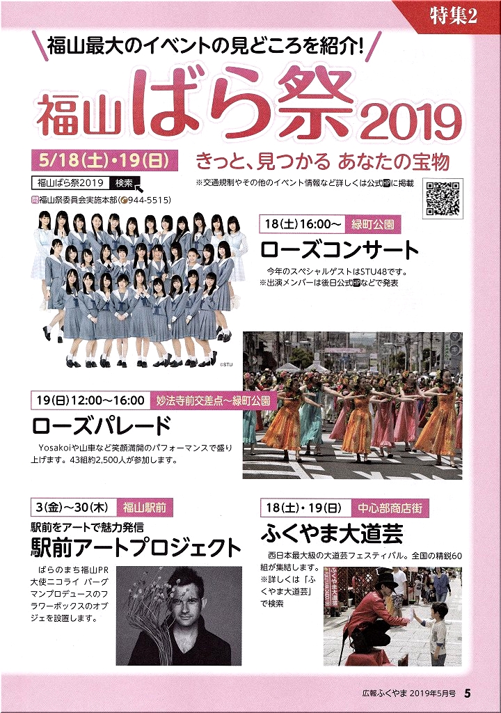 何気なくページをめくっておりますと、「福山ばら祭2019」の記事掲載が…そぅですネ、もぅこんな時期なのですねぇ〜