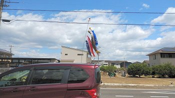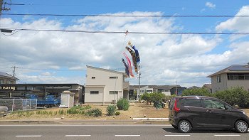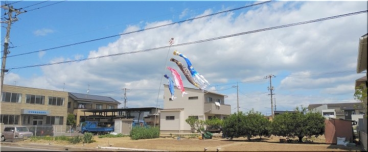 まず眼に入りましたのが、郵便局の真ん前のお宅の鯉幟り。適度な風に乗って気持ち良さそうに泳いでいます鯉幟り。つぃカメラを向けてしまいましたネ。