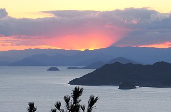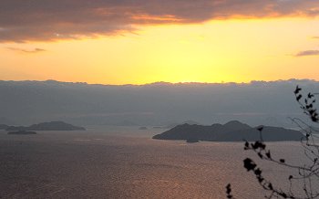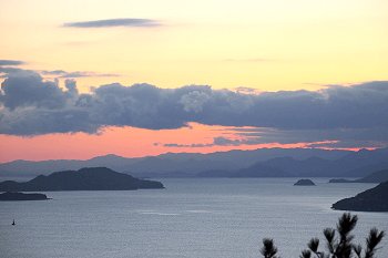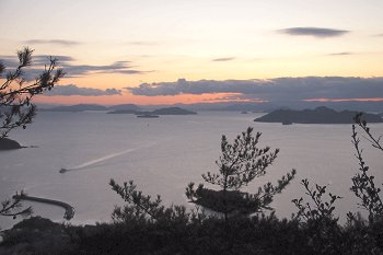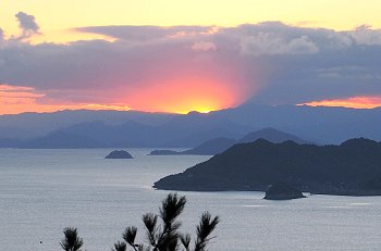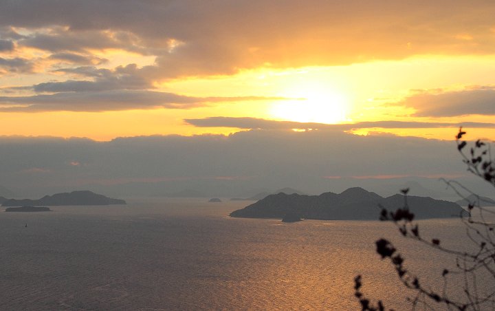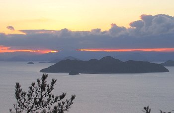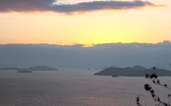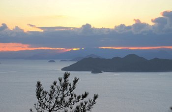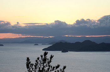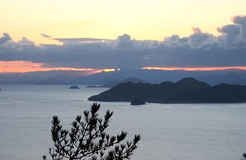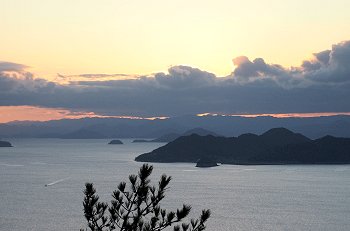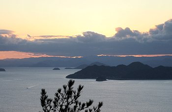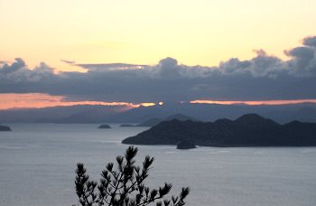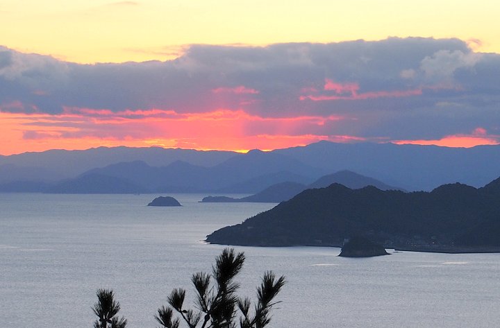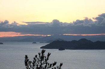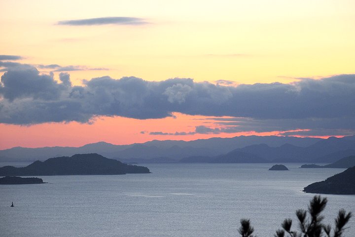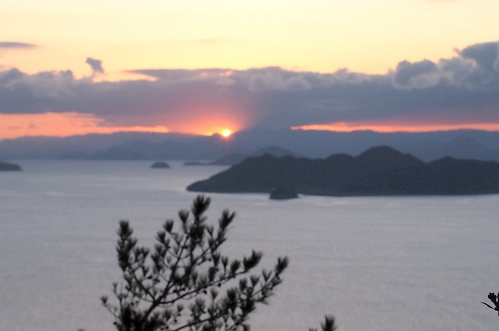 日の出の時刻到来ですけど、瀬戸内の島々には雲が覆っておりますから、この雲の層を越えませんと姿が現れません。