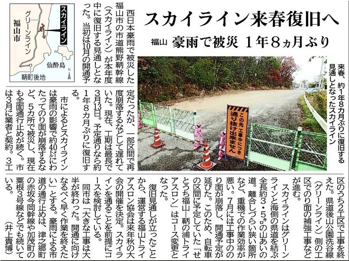 一日も早い復旧が待ち望まれますけど、12/28(土)付け中国新聞記事によりますと、早くても完了は3/13(木)。
