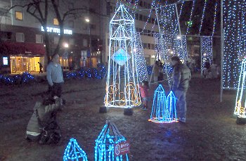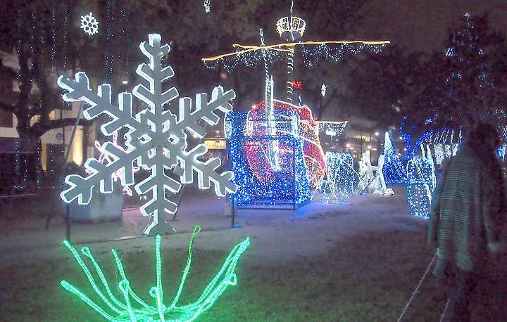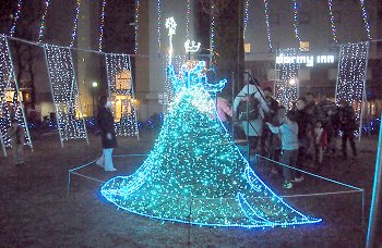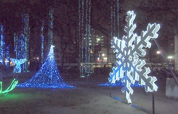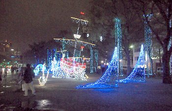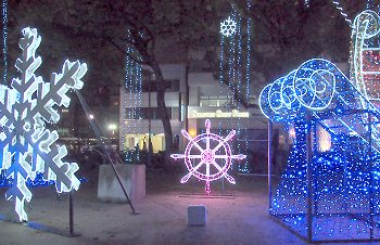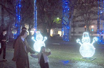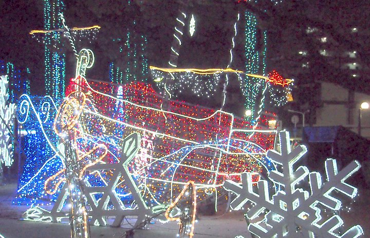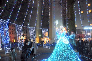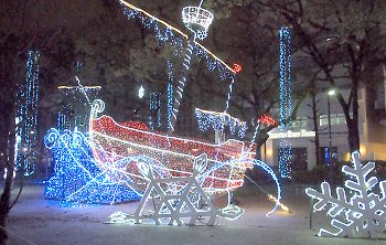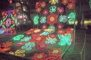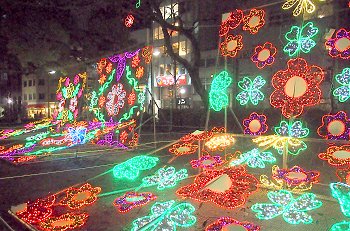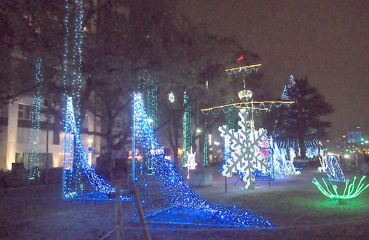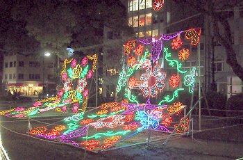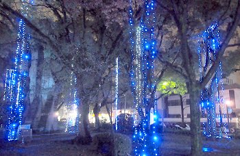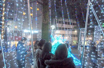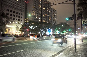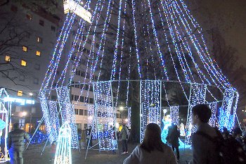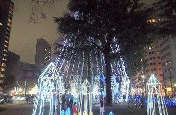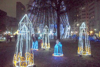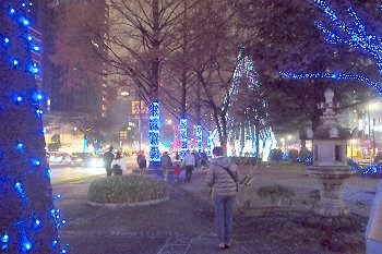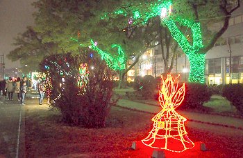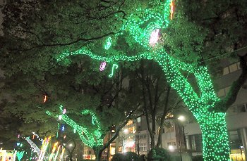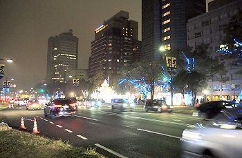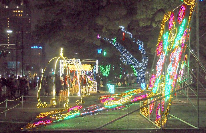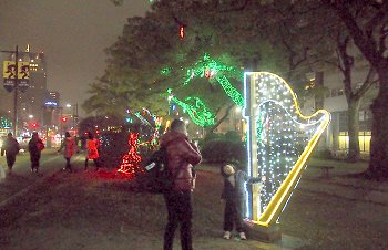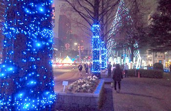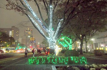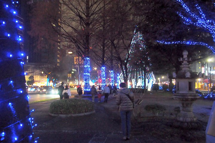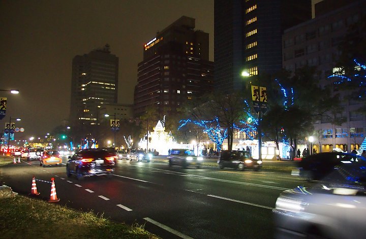 早速、百米道路…いぇいぇ、今は百メートル道路とは言わないのですネ、平和大通りですネ。NHK前の平和大通り南側から東方(比治山方向)に向かってドリミネーション鑑賞がスタートです。