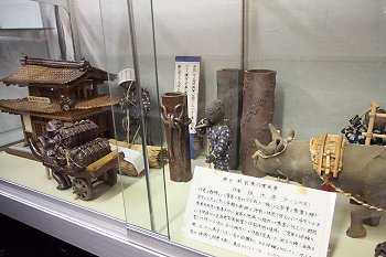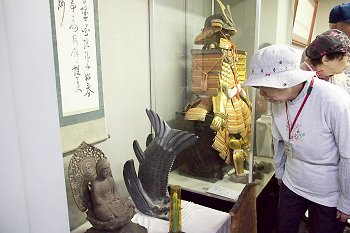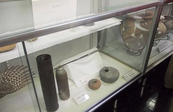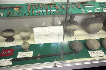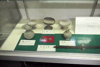 1階の展示室内を見終えますと、次は2階の展示室へ…ここには、弥生時代(後期)の焼けた米とか、後で訪れます大谷1号墳から出土の「金銅装環頭太刀」等の展示品がありまして、仲々興味深いものでありました(^.-)☆