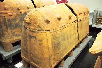 センター内に入りますと、「定北古墳」から出土の陶棺に圧倒されてしまいます。
