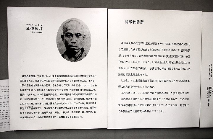 それにしましても、この地では、実に優秀な人材を輩出しておられますようですネ。展示室内には「箕作秋坪」「菊池大麓」のお二人の功績の紹介が…