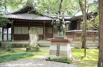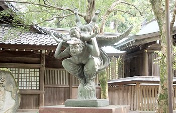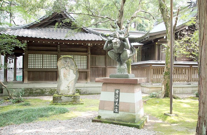 ・神社の境内にあるのがなんとも言えない母子順風之像。母子順風之像〜参拝者の度肝を抜かすアクロバティック母子〜