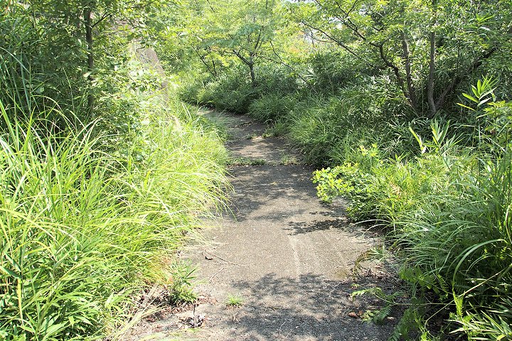 八丈岩周辺の景観を画像に納めておりますと、キレイに舗装されました下り道が…そして、その道には二輪車のタイヤの跡のような形跡が…
