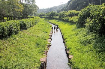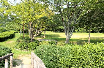 日本最大級の六番砂留(国の登録有形文化財)上流部の堆砂敷を利用して作られた公園で、四季を彩る木々や刈り込まれた低木、野面石の石組み水路などで整備され、緑と石と水辺の調和のとれた日本庭園風の公園です。