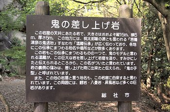この「鬼の差し上げ岩」の右下に「←鯉岩」の表示がありますけど、鬼の差し上げ岩の右側から上がって行きます遊歩道が存在します。