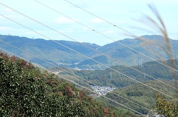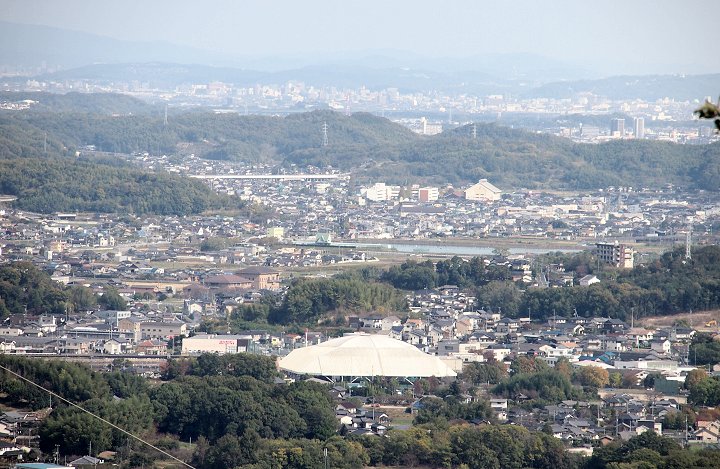 この駐車場からは、鴨方方面の眺望が楽しめます。眼に入ります白い屋根は「ビッグハット」のようですネ。全天候型多目的施設のふるさとかもがたプラザ(ビッグハット)では、スポーツ利用のほか、各種催し物も多数開催されていますようであります(^.-)☆