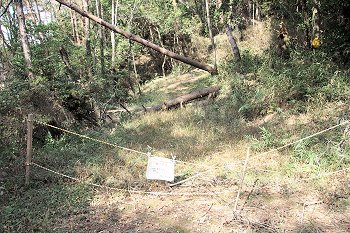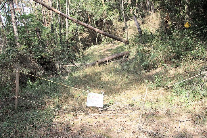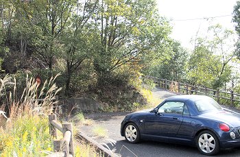 左側の展望台・休憩所方向への上り道は、何となく歩くのも可能なようにも思えるのですけど、やっぱり断念。不本意ではありますが、引き返す事に致します。
