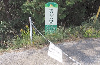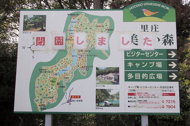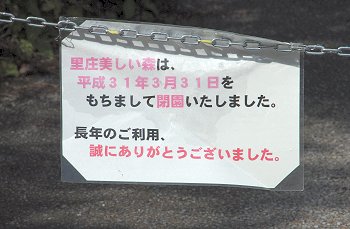 車から降り「里庄美しい森」の入口に眼を向けますと、『里庄美しい森は、平成31年3月31日をもちまして閉園致しました。長年のご利用、誠にありがとうございました。』の表示と共に進入禁止のチェーンが…
