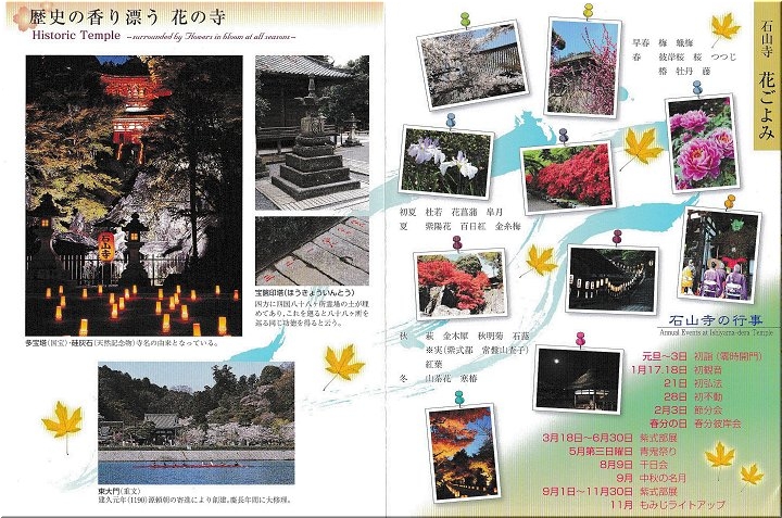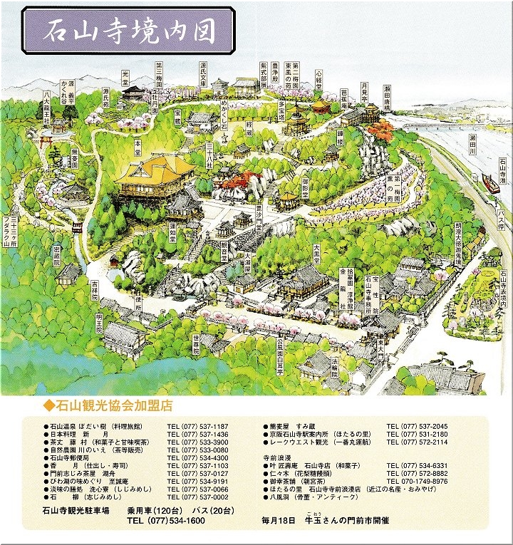 昼食後は、永年の念願叶い、ヤッと石山寺にと参詣ですけど、その前に「石山寺観光案内所」に立ち寄りパンフレット入手で事前勉強となりました(^-^)