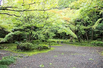 石山寺の参道の脇にあり、見落としがちな庭園。中は立入禁止だが、外から眺めるだけでも大変美しい。