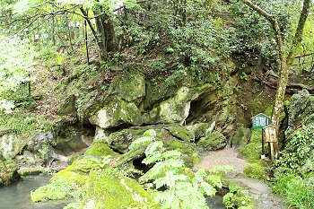 境内の手水場にあるくぐり岩は、天然の胎内くぐりの状態になっているもので自然の大理石でできている。くぐり岩は、奈良時代からある聖域。