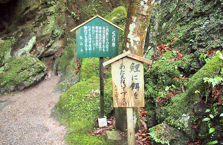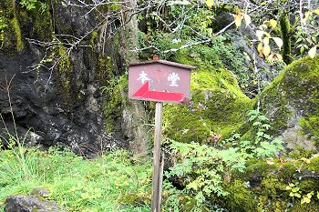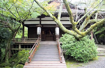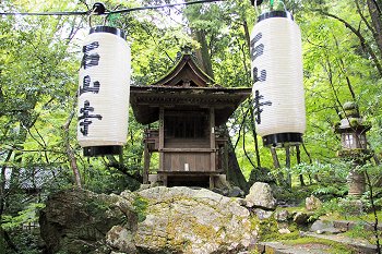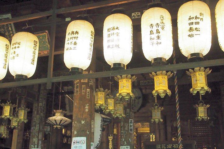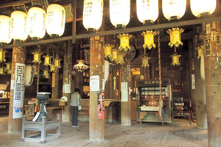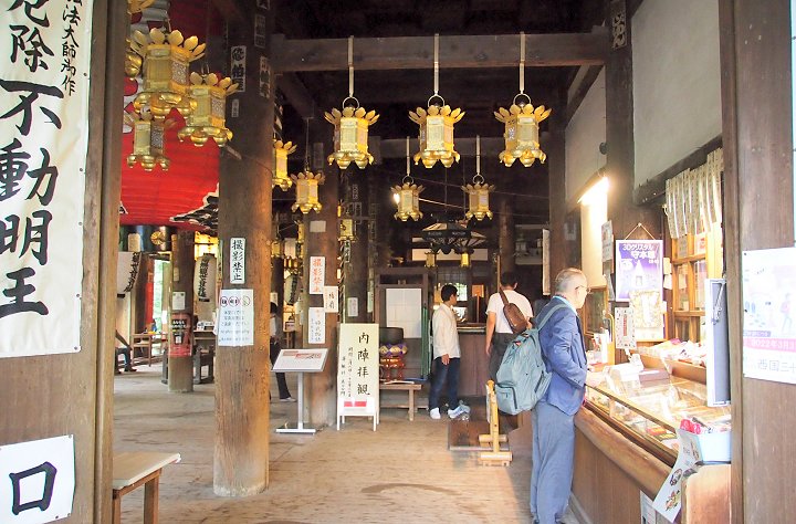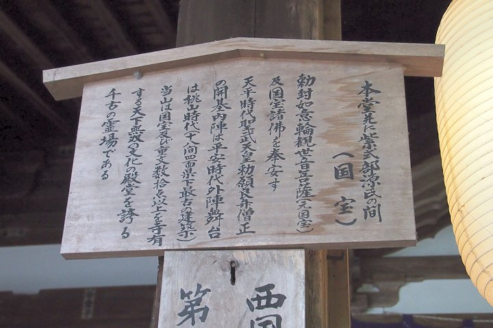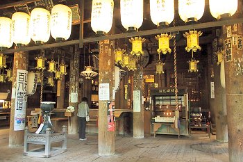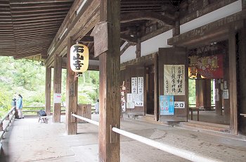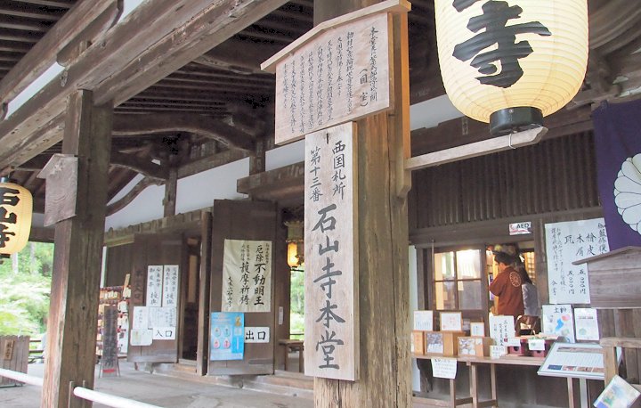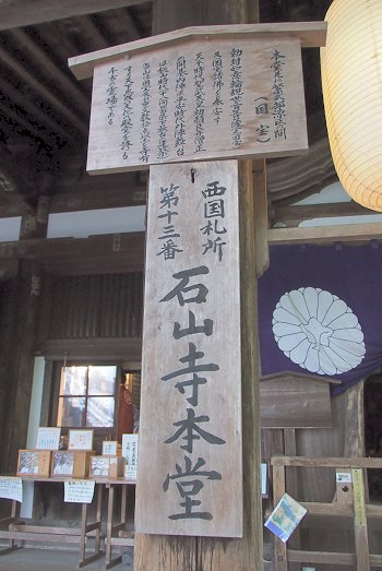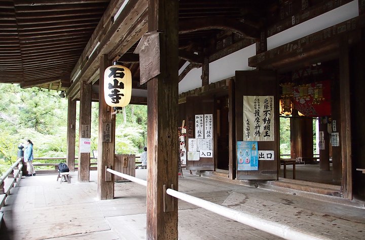 「石山寺」と書かれた提灯の奥が紫式部源氏の間であり、この部分が相の間となっている。従って、この部分より右側が正堂、左側部分が礼堂である。