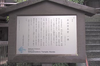 石山寺には、国宝建造物として、本堂の他に、多宝塔があり、また東大門と鐘楼は国重要文化財。